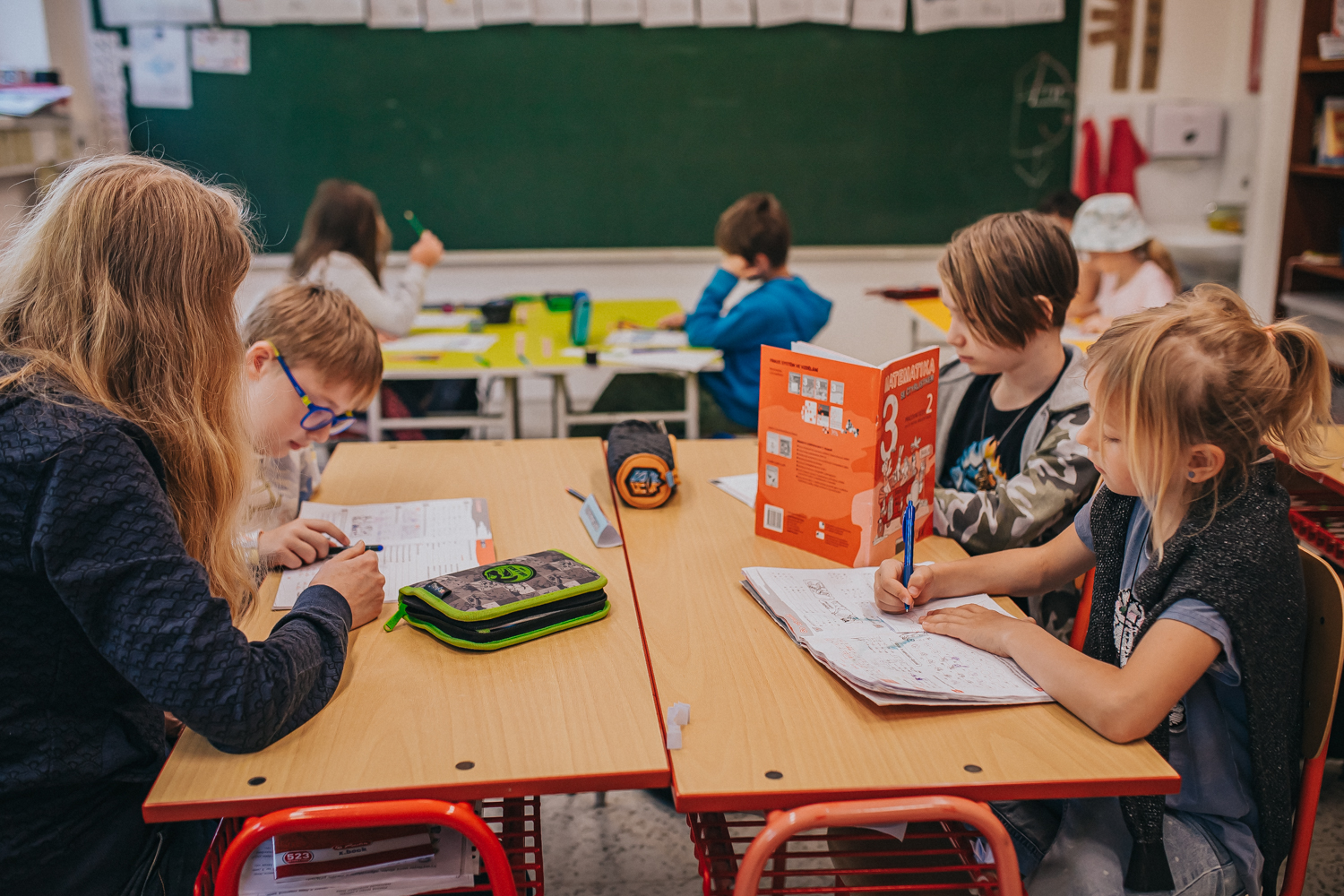 Ve třídě se společně učí děti tří ročníků. Využíváme také každé příležitosti ke společné výuce napříč trojročími. Mladší děti tak získávají vzory ve svých starších spolužácích, starší děti se učí empatii a trpělivosti při učení s mladšími spolužáky. Vzájemně se obohacují a hlavně tvoří bezva partu.